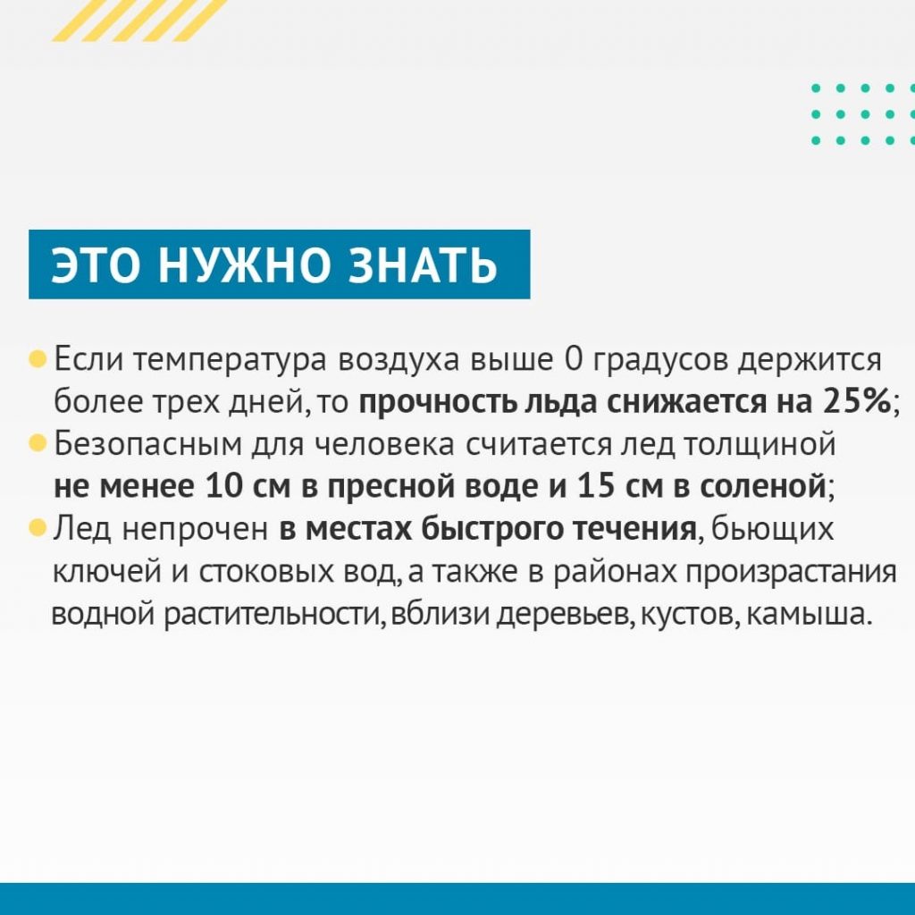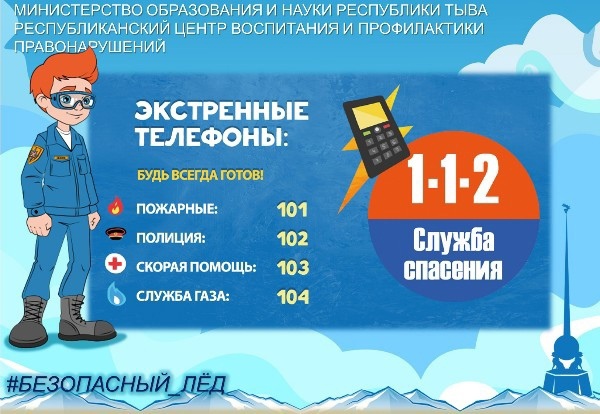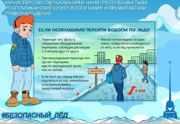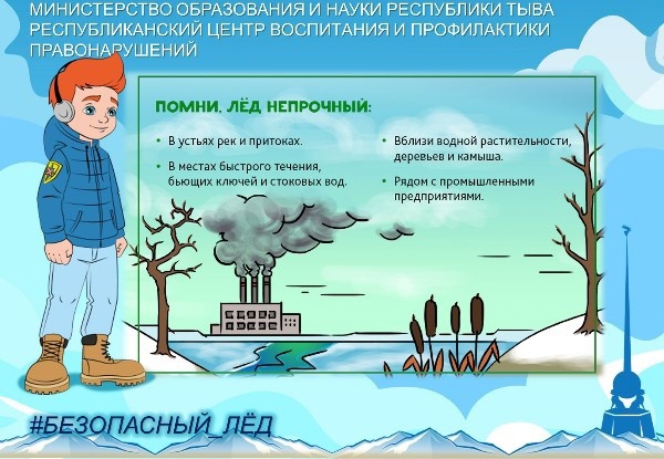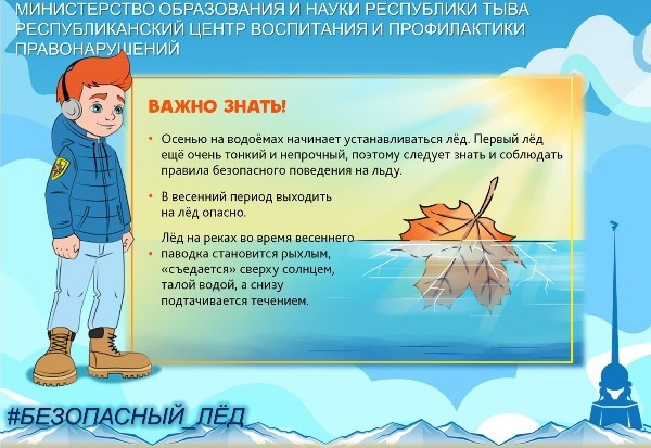 В образовательных организациях Республики Тыва до 1 мая 2021 года проходит профилактическая акция #Безопасный_лëд в целях недопущения несчастных случаев с участием несовершеннолетних на водных объектах.Тонкий лед является одной из самых распространенных опасностей, которые приводят к гибели людей. Избежать трагедии можно только в том случае, если соблюдать установленные правила безопасного поведения на льду водоема. О простых правилах безопасности – в инфокарточках 👇🏼