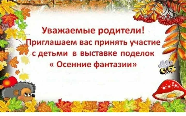 Приглашаем вас принять участие вместе с детьми в конкурсе поделок из природного материала «Осенняя фантазия»который проводится в нашем детском саду до 03 октября. Ведь для ребенка важен процесс участия в изготовлении поделки вместе с мамой и папой.