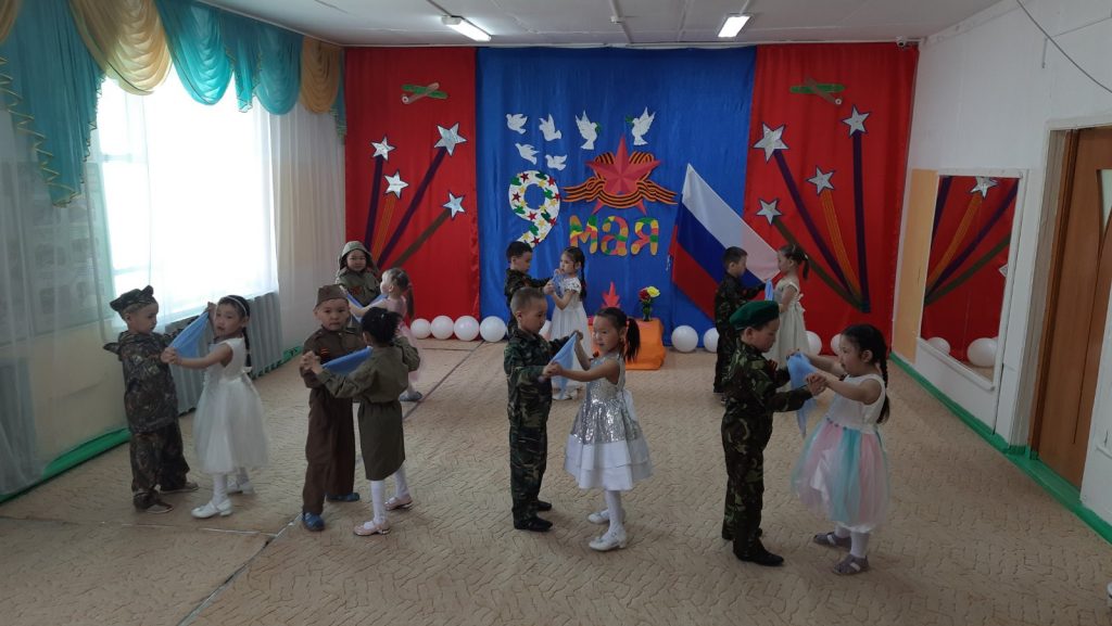 День Победы один из самых почитаемых праздников в нашей стране. В преддверии празднования 77-летия Дня Победы в детском саду прошел мини — концерт с участием всех групп.
