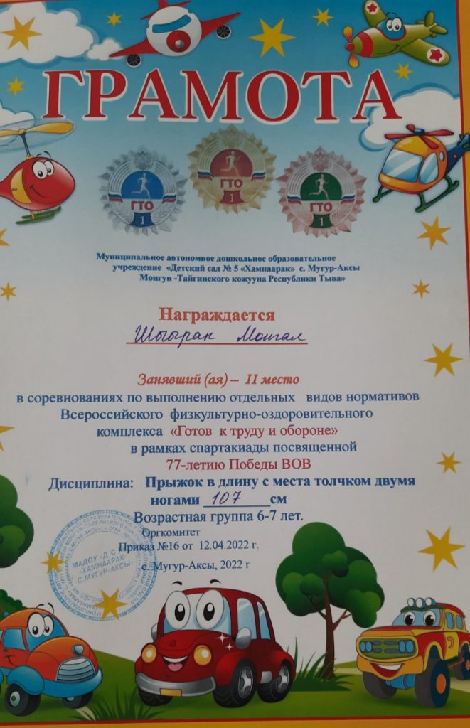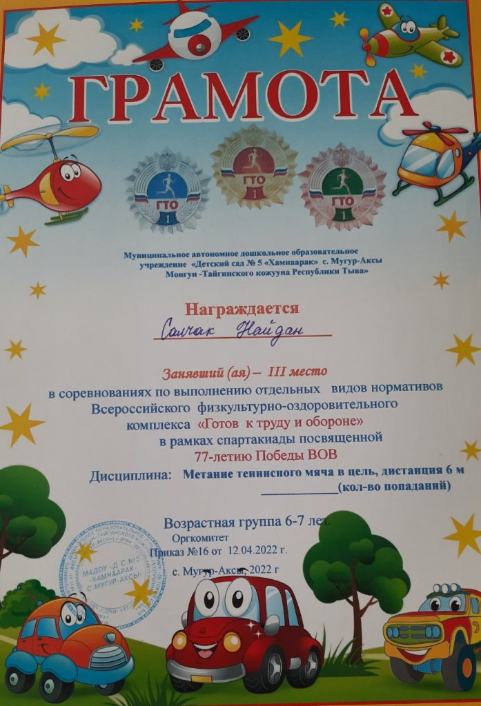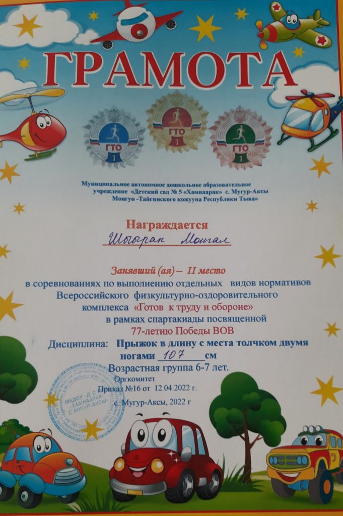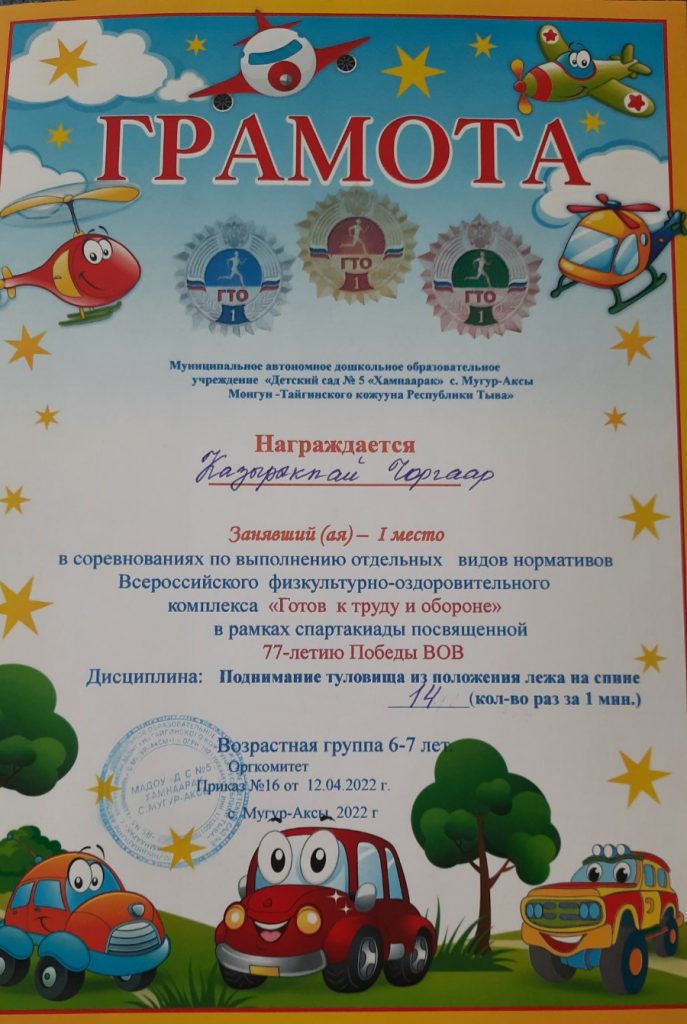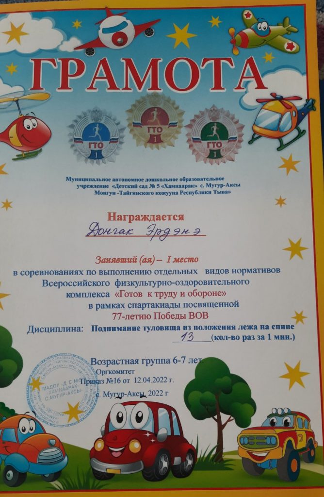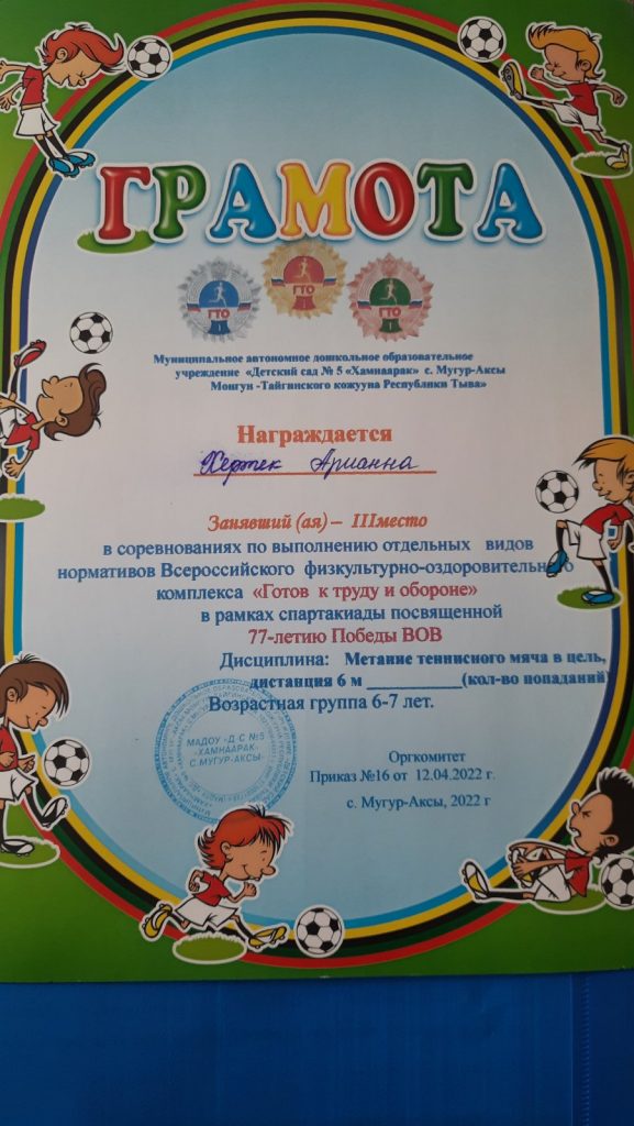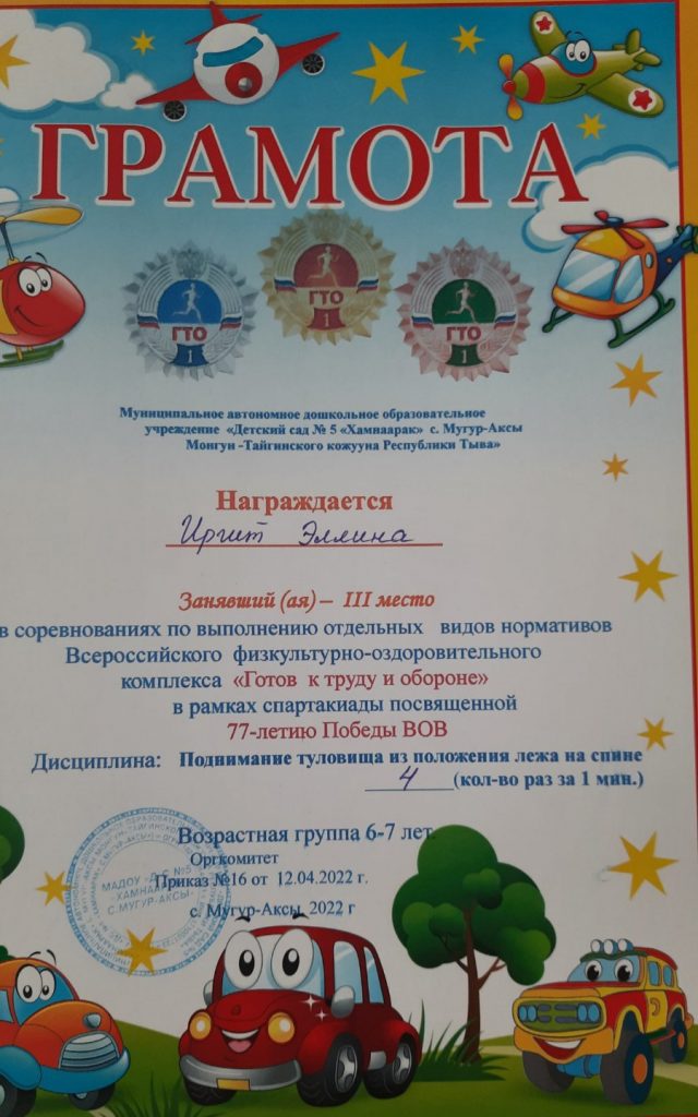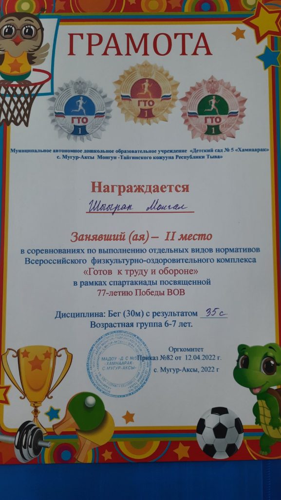 Без рубрики ГТО для дошкольников 07.05.2022 / 5 мая воспитанники старших групп прошли соревнования по выполнению отдельных видов нормативов Всероссийского физкультурно-оздоровительного комплекса «Готов к труду и обороне» в рамках спартакиады посвященной 77-летию Победы ВОВ.