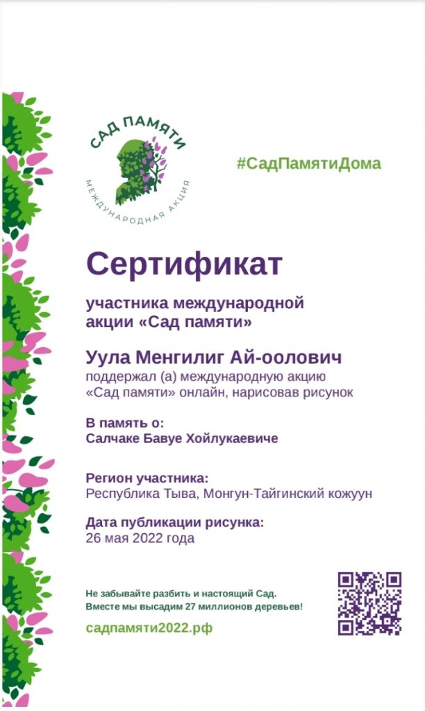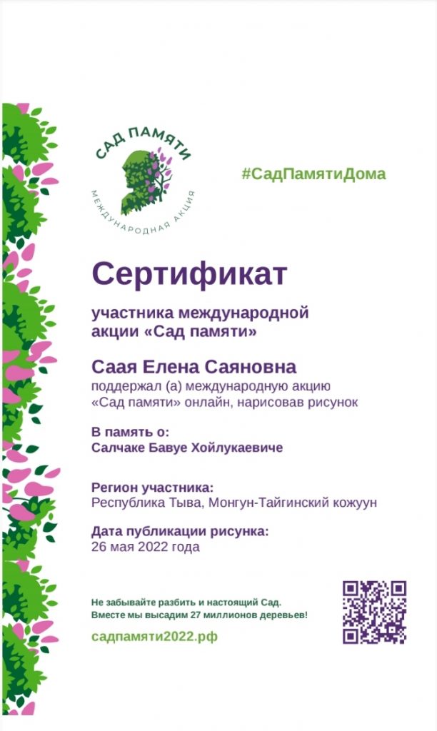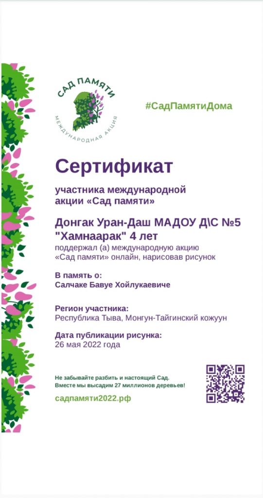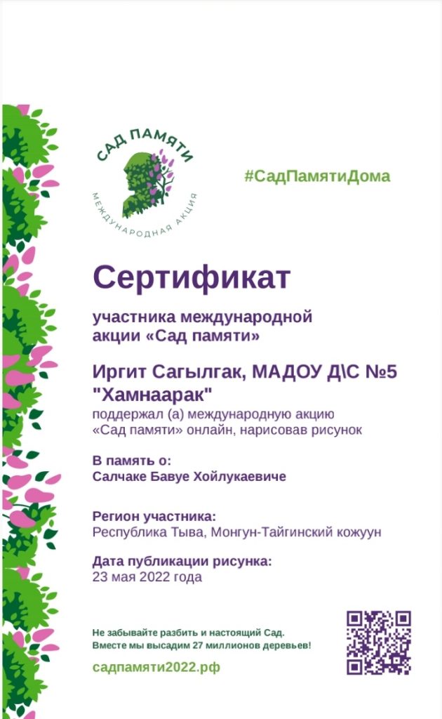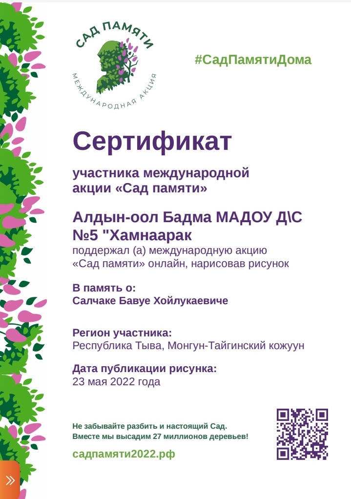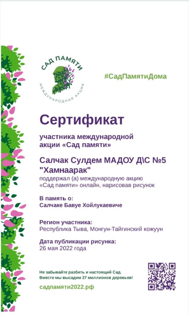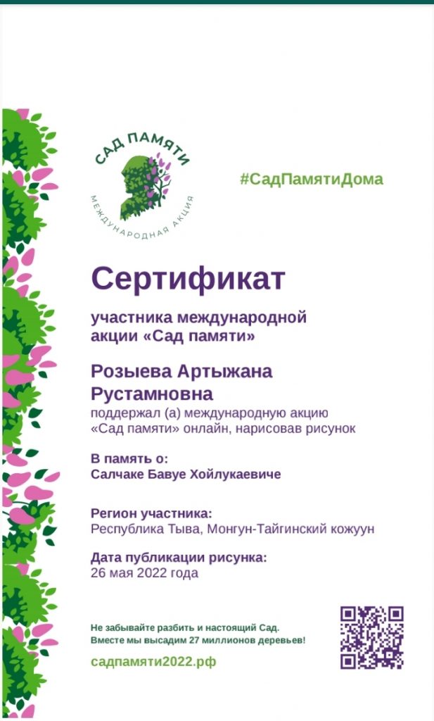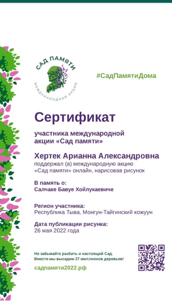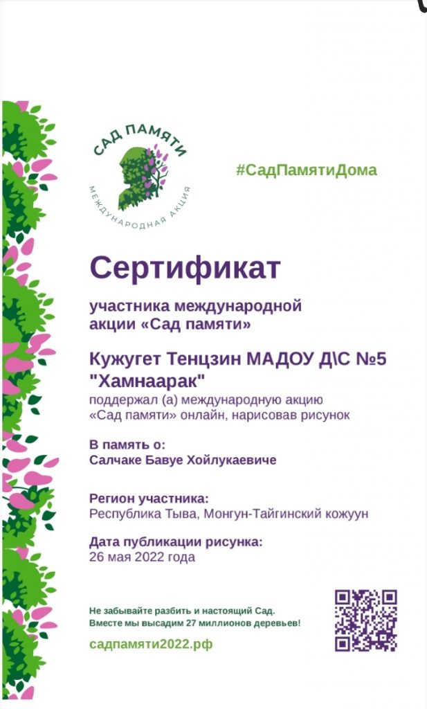 Ребята получили сертификаты об участии в Международной патриотической акции «Сад памяти»